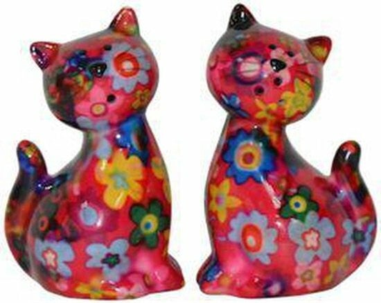 Cosy Charming Cat' Caramel does everything at ease. Your lap is her favourite place and she loves to give you hugs. This colourful pair of cats is guaranteed to bring colour to your kitchen table. The rubber cap at the bottom makes it easy to fill their round tummies with salt or pepper. Also discover the salt and pepper set of chicken Matilda, dog Bruno, duck Ducky, frog Theo, mouse Martha and owl Bo. Measurements * S: L5xD4,5xH6,5 CM